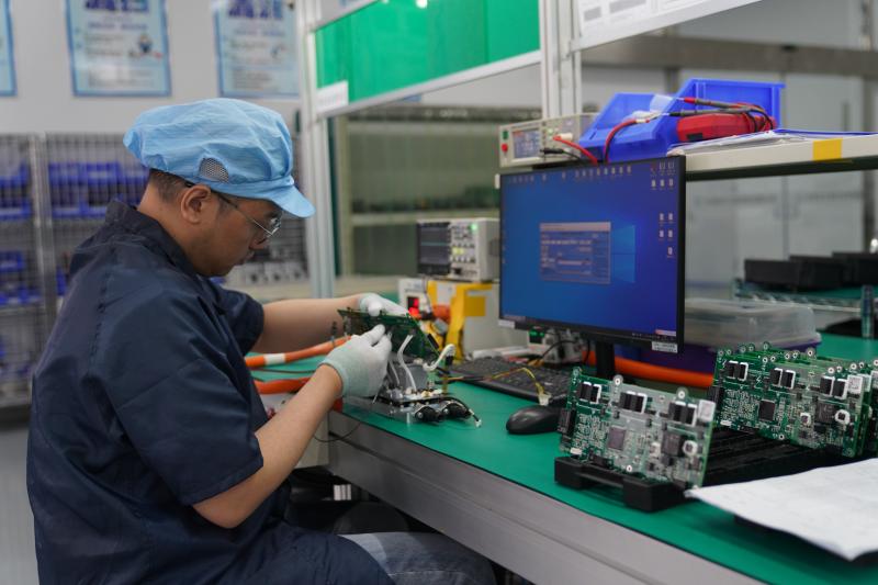 在企业的生产车间,工人们正紧张有序地做着产品的组装工作。“一个产品的量产需要经过采购、生产、测试几个很严格的把关流程。”副总经理张前介绍道,“我们对采购的物料,包括结构件、电路板等都要经过很细致的检验才能用于生产,在车间也要时刻保持恒温恒湿的状态。每一个产品组装完成后我们要进行通电高温老化、实际测试之后才能正式产出,最后经过对产品尺寸、外观等的出产检验合格后才会打包发货。”
